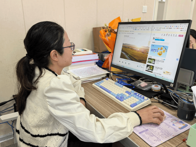 评审过程中,三位老师严格遵循大赛评分标准,从不同维度细致考量作品质量。曹老师聚焦内容深度,重点审核短视频是否精准诠释“美丽中国”内涵、演讲是否紧扣主题传递积极价值观;马老师侧重外语能力,细致评判语言表达的准确性、流畅度及跨文化沟通适配性;林老师则关注创新表现,考察短视频的镜头语言、叙事结构与演讲的思辨逻辑、台风展现。面对每份作品,老师们均认真记录评分要点,不时交流意见,确保评审结果客观公正。
