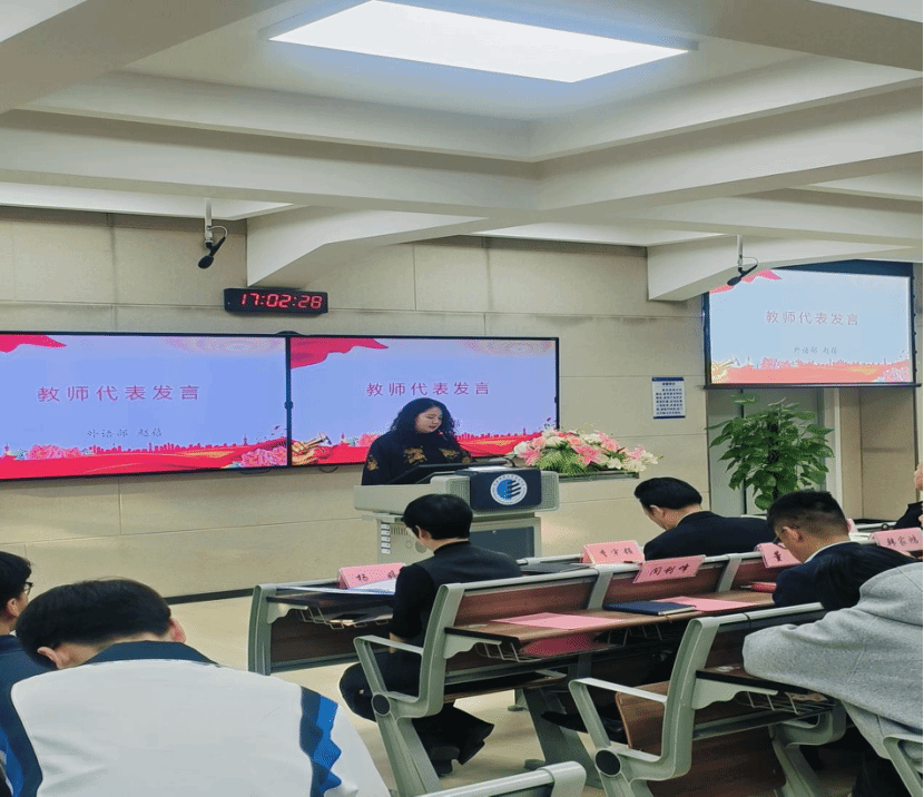 在学风建设活动月的总结表彰大会上,赵蓓老师作为优秀教师代表上台发言。她结合自身从教多年的心得体会以及本次获奖项目的创作历程,分享了关于构建高效课堂、激发学生内驱力、融合课程思政与专业教学的深刻思考。赵蓓老师谈到:“外语学习,不仅仅是掌握一门工具,更是打开一扇通往不同文化与思维的窗口。我们的责任,是引导学生在语言的海洋中精准航行,在文化的碰撞中树立自信,最终成长为具备家国情怀与国际视野的复合型人才。”她的发言情真意切、见解独到,既有理论高度,又有实践温度,赢得了现场师生的广泛共鸣与热烈掌声,充分展现了外语部教师立德树人、潜心育人的精神风貌。