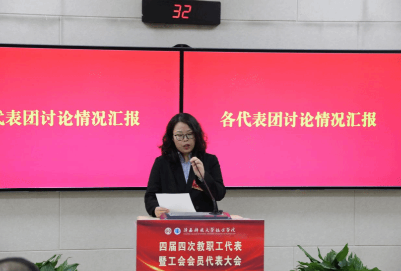 公共教学部分会教职工团代表苏婕老师做了情况汇报,她指出:公共教学部代表团全体代表紧扣大会主题,深入研学校长工作报告及各项审议材料,围绕学校转型发展、转设评估、“十五五” 发展规划编制等核心工作展开热烈研讨,大家共识高度凝聚、建言务实有力。同时,代表们立足公共教学部的职能定位,结合公共基础课教学工作实际,提出公共基础教学作为人才培养的根基工程,必须紧扣学校高水平应用型大学建设目标,主动对接各专业人才培养需求,深化课程改革、推进资源融合、强化师资建设,让公共基础教学与专业教育同频共振,为学校转型发展筑牢教学基础。各位代表均表示,将把本次大会精神转化为教学工作的实际行动,以更务实的作风、更扎实的举措做好公共教学各项工作,为学校决胜转设评估、实现高质量发展贡献公共教学力量。代表们一致认为,校长工作报告立足学校转型发展关键节点,总结成绩客观详实、分析形势精准深刻、部署工作科学务实,既充分肯定了过去一年学校在各领域取得的亮眼成绩,也清晰点出了学校在推进转设评估、深化教学改革、加强师资建设等方面面临的挑战,更对2026年重点工作作出了系统规划,为我们公共教学工作的开展指明了清晰方向,让大家倍感振奋、深受鼓舞,也更加明确了后续的工作目标和责任担当。