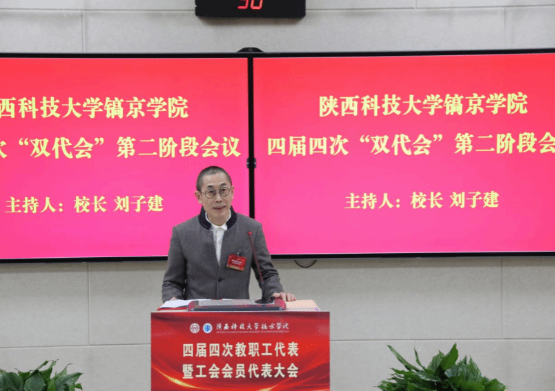 陕西科技大学镐京学院 2026 年 “双代会” 胜利闭幕春潮澎湃启新程,凝心聚力向未来。3月20日下午,陕西科技大学镐京学院四届四次教职工代表大会暨工会会员代表大会在教学楼223报告厅胜利闭幕。党委书记王贵平,执行校长黄国泉,校长助理吴秀强、吕超等校领导出席大会。会议由校长刘子建主持。全校各部门教职工代表齐聚一堂,共话发展、共商大计,为学校高质量发展凝聚起同心同向、真抓实干的磅礴力量。